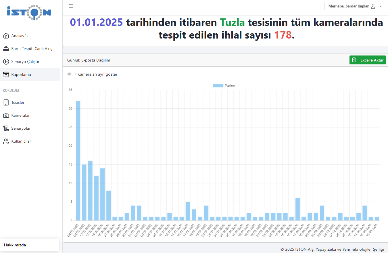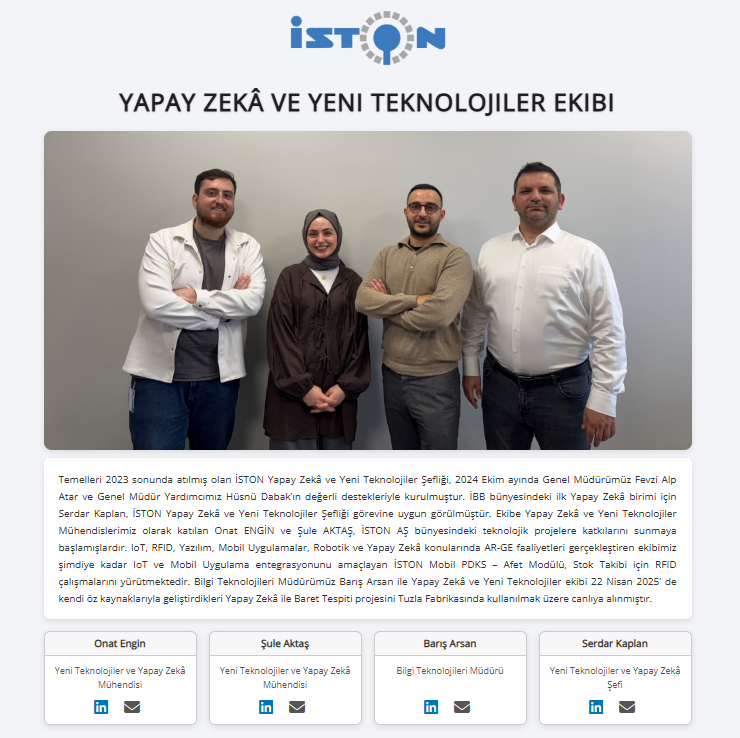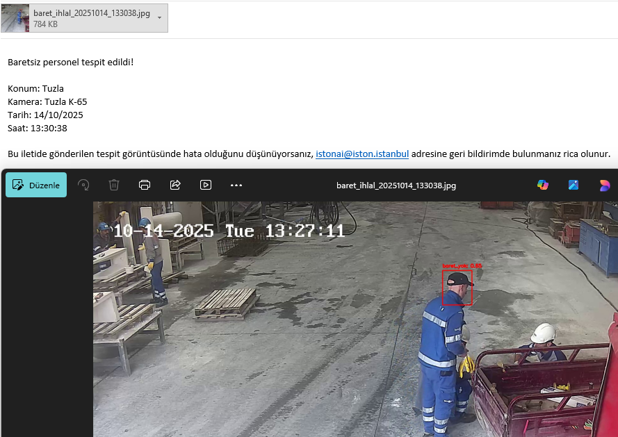 İSTON Yapay Zeka ile Baret Tespit Projesi ile İSG süreçlerine destek hedeflenmiştir. Denetim oranı arttırılıp, baretsiz personel seviyesinde dramatik bir düşüş gözlenmiştir.